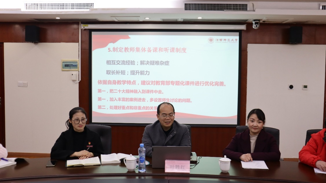 通过此次集体备课,大家一致认为,新教材修订具有重要的意义,体现出《马克思主义基本原理》与时俱进的理论品质,这也为新学期教学工作的顺利进行做了充分准备。通过本次集体备课,既有助于老师们把握新教材新精神,也加强了与江西师范大学马克思主义学院的交流合作。