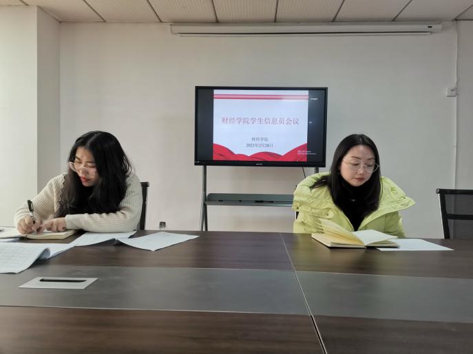 2月27日下午,财经学院在综合楼207举行2022-2023学年第二学期第一次学生信息员反馈会。学院副院长匡文婷、教务科全体成员、教学信息员指导教师邹琴琴及全院教学信息员参加会议,会议由教务科科长李静主持。