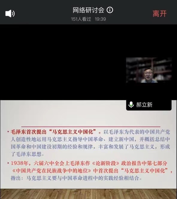 此次会议,以“马克思主义中国化时代化的实践向度和文化意蕴”为主题,以《毛泽东思想和中国特色社会主义理论体系概论》(2023年版)新教材的使用和研究为重点,全程由中国人民大学明德书院院长郝立新教授深入阐释,为我们系统讲解了三项内容:首先,是马克思主义中国化时代化的内涵和进程;其次,是当代中国马克思主义的实践向度;最后,是当代中国马克思主义的文化意蕴。