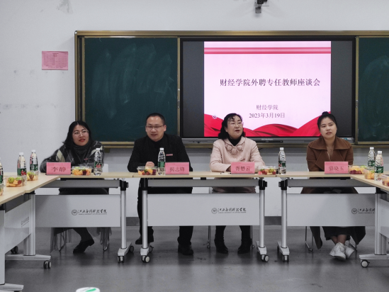 为做好本科教学工作合格评估期间课堂教学管理工作等工作,以良好的精神状态迎接本科教学工作合格评估。3月19日上午财经学院在行知楼124召开外聘教师座谈会,校党委委员、副校长胥懋云,财经学院院长揭志锋,教务科长李静,办公室副主任骆晓玉以及外聘专任教师参加会议。会议由教务科长李静主持。