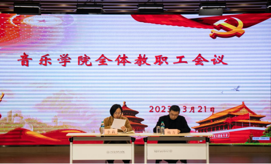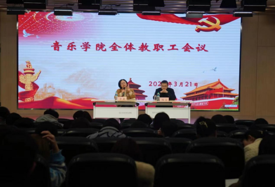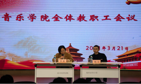为推进必赢官网本科评估工作顺利进行,3月21日下午,音乐学院于辰林音乐厅召开了2022-2023学年第二学期第二次全体教职工大会,参会人员有院长李莉,党总支书记、常务副院长杨力以及音乐学院全体教职工参加会议,会议由院长李莉主持。