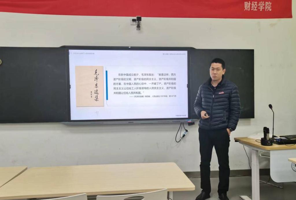 高天义老师就专题九第四部分的内容进行了展示。以天安门广场图片为导入进行讲解,从实现了民族独立和人民解放、创造了中华民族伟大复兴的根本社会条件,鼓舞了世界被压迫民族和人民的解放斗争,证明了马克思主义的科学性等四方面讲述了中国新民主主义革命胜利的伟大意义;从坚持中国共产党的领导,不断推进马克思主义中国化,充分运用三大法宝,建立广泛的统一战线,坚持革命的武装斗争阐述了中国新民主主义革命胜利的基本经验。