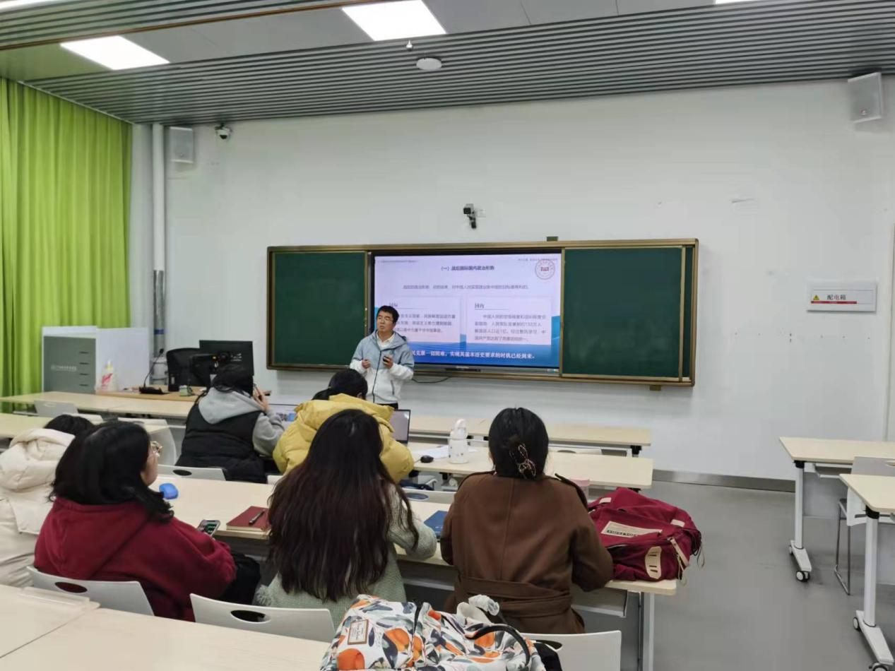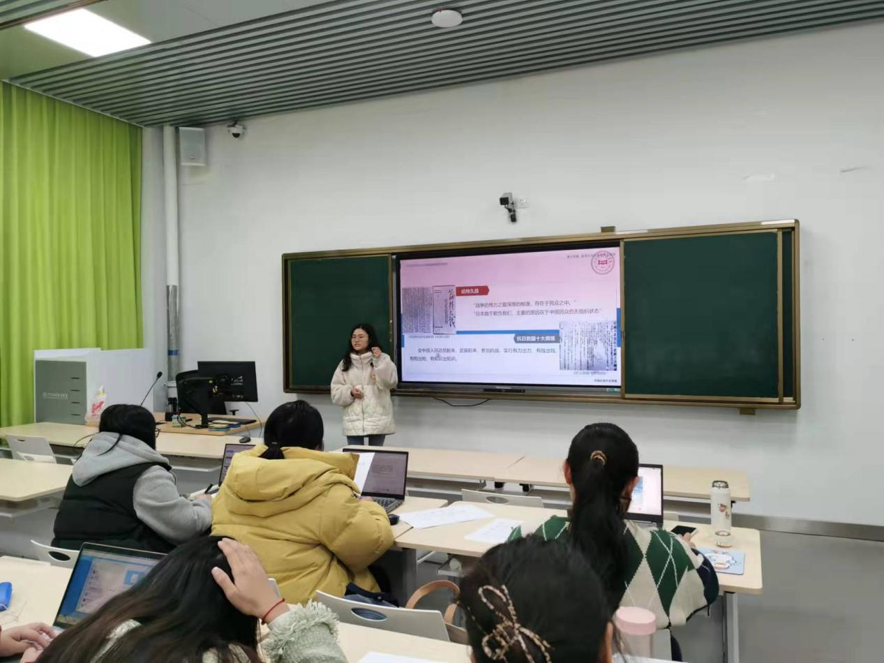 为进一步提升我院教师技能和教育教学能力,促进教师专业发展,提高教师综合素质,打造一支思想专业与业务过硬的教师队伍。2023年3月18日,我院中国近现代史教研室在行知楼125教室开展了2022-2023学年第二学期《中国近现代史纲要》课程第一轮第二次教师磨课活动。此次磨课就《中国近现代史纲要》专题九“新民主主义革命伟大胜利”的内容而展开。本次活动由中国近现代史教研室主任王莉主持,本学期担任本门课程教学的教师参加。