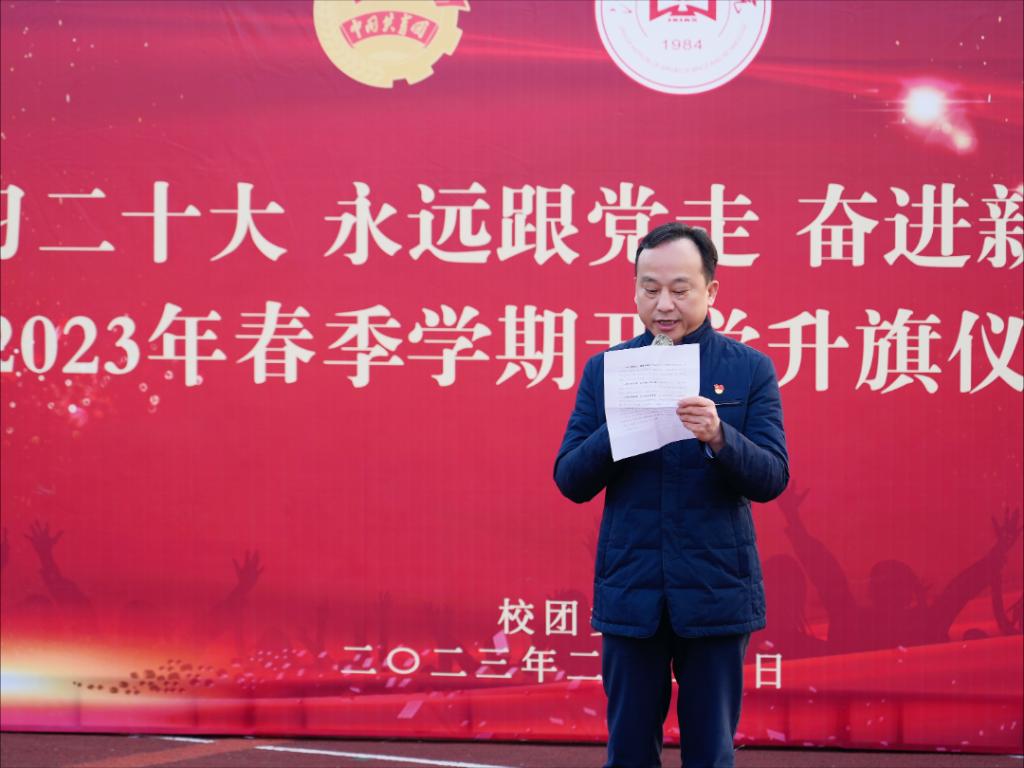 今年是全面学习贯彻落实党的二十大精神的开局之年,是学校加快内涵建设、深化改革、创新发展的关键之年,是学校迎接教育部本科教育合格评估之年。为引领青年学生在新征程中勇担使命,矢志奋斗,争做有理想、敢担当、能吃苦、肯奋斗的新时代好青年,学校举行“学习二十大 永远跟党走 奋进新征程”2023年春季学期开学升旗仪式。党委书记彭迪云和五千余名师生代表参与升旗仪式。