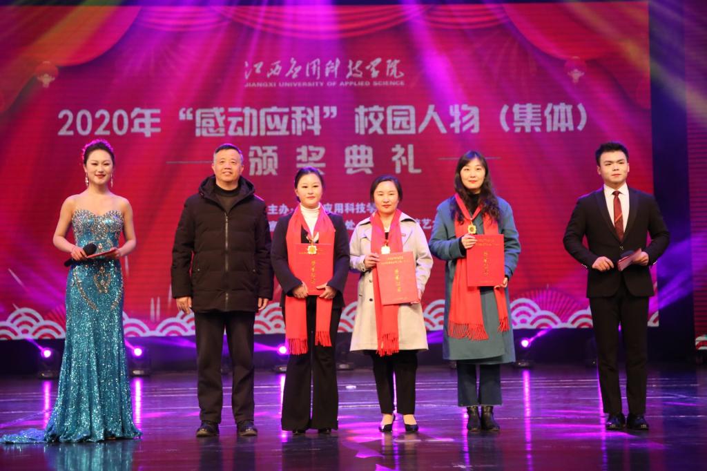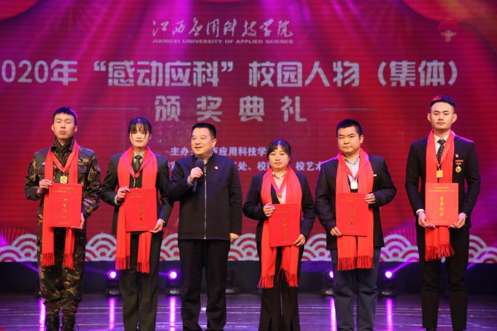 颁奖典礼回顾了在2020年上演的一桩桩至善至美,感动人心的事迹。在2020年新冠疫情防控战斗中,必赢官网师生主动“出列”,投身疫情防控各类志愿服务活动的抗“疫”师生代表张伟健、郭新巧、黄浩斌,抗疫夫妇瞿振东、李雅琴;在学校“三元育人”理念的浸润下,始终以优秀共产党员为指引,积极向党组织靠拢,立足专业基础、刻苦钻研职业技能,心怀感恩之心,投身文明志愿实践的江西省最美大学生李艾玲;走出学校,走向社会,走向基层,用双手助力乡村发展,用心灵关怀留守儿童,用头脑为当地学校和政府献计献策的童趣童团队、“美丽中国我是行动者”社会实践调研团、返乡推普·语你相约社会实践队;投身于学校教学科研工作,扎实的开展教育科研工作的王慧、魏雅姝、胡灵芝;踏实肯干求务实的后勤工作人员徐银苟;经过180天艰苦奋斗,在2020年全国大学生机械创新设计大赛的舞台上,克服重重困难,斩获全国一等奖的获奖团体以及在学习上孜孜以求的自强之星集体。获奖者一一走上颁奖台,一个又一个感动你我的故事激荡着在场观众的心灵,大家以热烈的掌声向他们致以最崇高的敬意。他们的事迹让大家在感动中汲取奋发向上的力量,让平凡的生命有了厚度与广度,让感动与向上的种子播撒活动现场,在应科人的心中生根发芽。