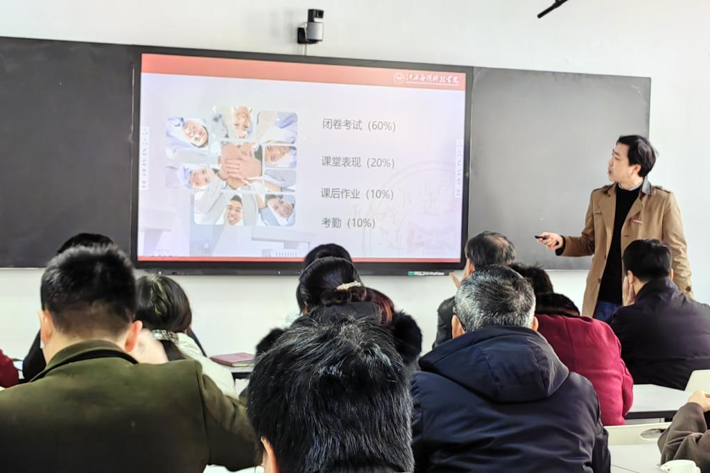 各位课改教师认真准备和说课,评委仔细记录说课过程中的有点与不足。李俊院长指出,希望各位课改教师通过课堂教学改革,改进教学模式,提高教学水平,调动学生学习的积极性和创造性,优化学生学习状态,提高运用知识解诀问题的能力。