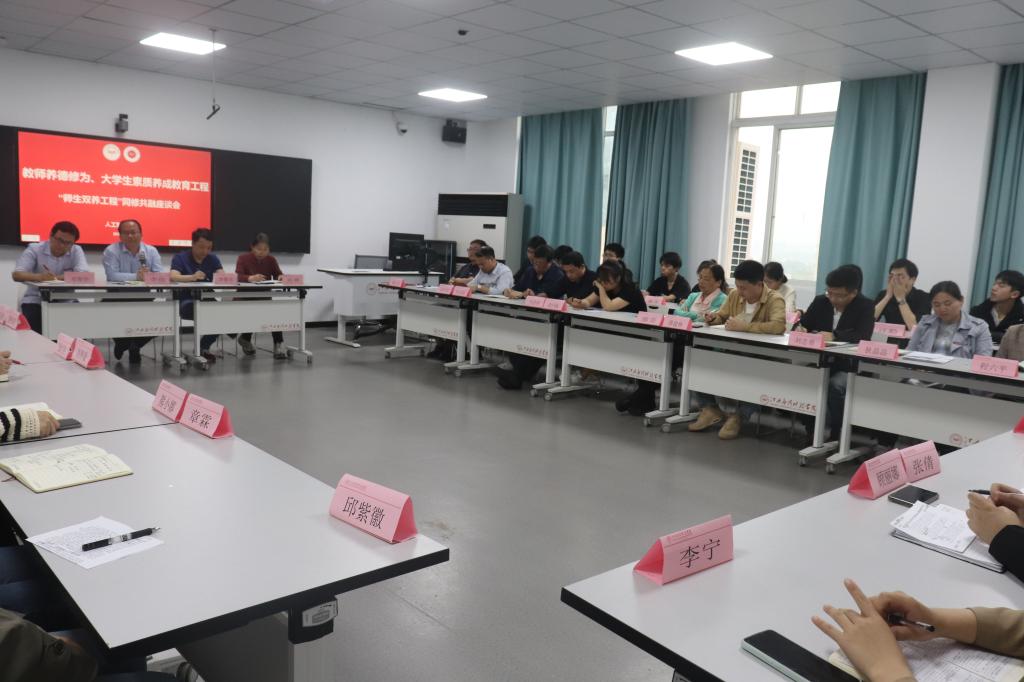 为落实立德树人根本任务,按照学校深入实施“师生双养工程”工作目标,人工智能学院近年来从校园基础文明建设抓起,结合“大学生养成教育”和“教师养德修为”两项工程,实行师生同修共融,同向同行,促进教师与学生同频共振、教学相长,强化师生的文明素养和道德风尚。学院于2023年4月18日在三达楼410教室举办人工智能学院“师生双养工程”同修共融座谈会。师生代表齐聚一堂、畅所欲言,分享学习体会与感受,对学院发展建言献策。学院党总支书记许维东,院长李俊,副院长刘晔、邓春华,以及部分师生代表参加了座谈会。