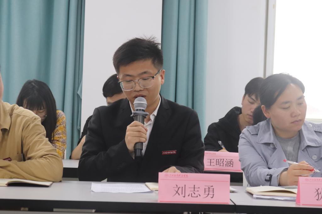 专职教师代表谭建林、刘志勇老师分享了入职一年多以来在学校的工作状况,在学院的工作中得到成长,在业务能力的学习上增长了文化素养,提高了自身素质。
