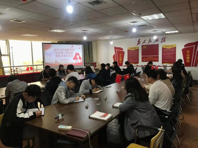 2021年3月26日下午4:30,为进一步弘扬雷锋志愿服务精神,增强党员干部、志愿者们的凝聚力和团结力,软件与区块链学院开展了“雷锋月”主题党日活动。