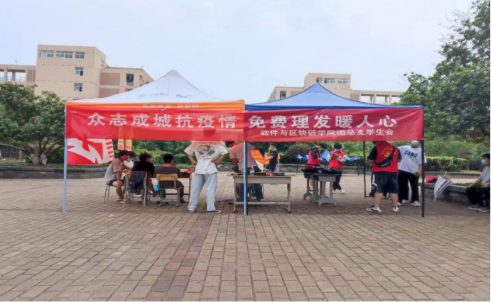 疫情不松懈,劳动不停歇。劳动教育是新时期党对教育的新要求,是中国特色社会主义教育制度的重要内容。软件与区块链学院认知贯彻落实学校关于进一步加强新时代劳动教育的实施方案,于5月7日下午在一食堂小广场举行免费理发、修眉劳动教育。通过以劳树德、以劳增智、以劳强体、以劳育美四种形式,教育引导学生崇尚劳动,明确弘扬劳动精神、重视劳动教育对自身成长的重要意义,建立崇尚劳动的价值共识和行动自觉。
