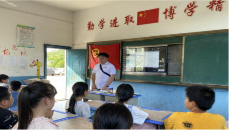 为增强留守儿童的安全教育和心理健康问题,6月23日上午,软件与区块链学院“三下乡”暑期社会实践团队在何锦老师的带领下,来到了莲荷乡杨家村家小学进行防溺水安全教育活动和对小学生的心理健康教育活动的开展。“童心燃梦助乡村”实践服务团队通过宣讲的方式向孩子们宣传安全知识和心理健康教育。