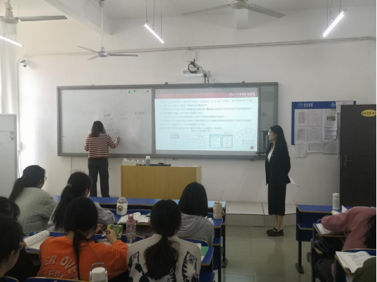 刘梦瑶老师讲授的《税法》课程,在公开课过程中,主要采取翻转课堂的形式进行。在已布置学生课前预习的情况下,刘梦瑶选取一个知识点——土地增值税的征收管理,邀请学生进行分享,再根据学生的分享内容做相应补充;在计算讲解环节,涉及到计算应纳税款的习题,为了考察学生的知识掌握情况,刘梦瑶邀请一位学生上台写自己的答题步骤,再选取一位学生对答题步骤进行讲解批改。整体而言,课堂教学氛围良好,学生积极性较高,课堂上注意力集中。
