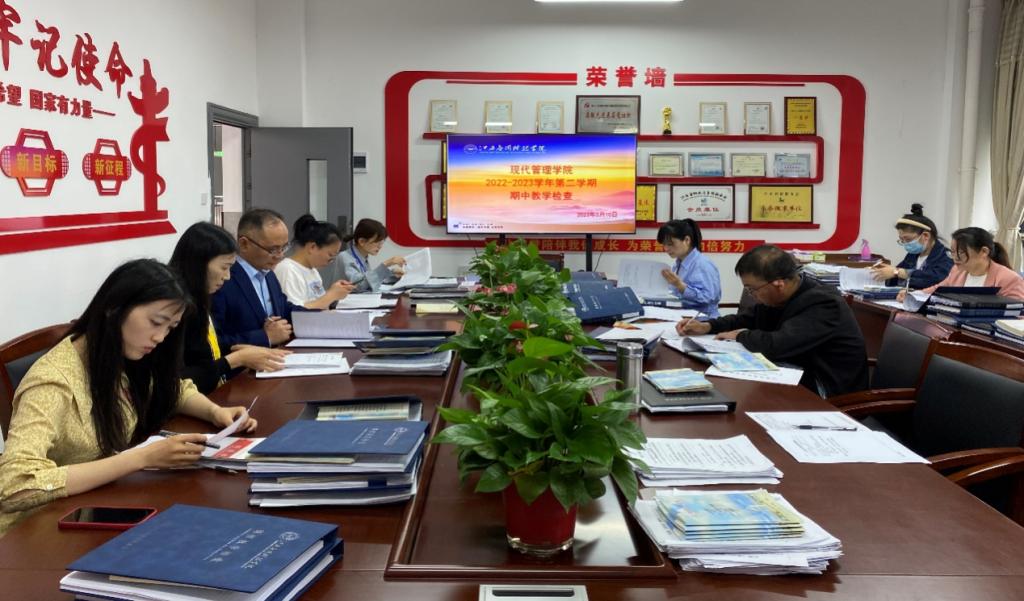 学院成立了以院长谢远健为组长、副院长漆圆方为副组长、教研室主任、院督导以及教务科组成的期中教学检查组,5月10日下午开展了教学材料检查,对学院任课老师课程大纲、教学日历、教案、纯实践课程全套材料、平时成绩记录册、作业批改情况、辅导答疑情况、实训报告及教研室活动记录本等材料进行了检查。检查组对每位老师的各项常规工作进行了认真细致的检查和评定,对检查中发现的一些问题作了认真记录并及时向老师进行了反馈。