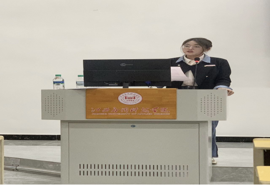 2020级学前教育5班蒋迁同学分享了过去一年的实习经验。她表示,学弟学妹要深刻领会实习的意义,通过实习不断增强就业竞争力;要服从实习单位的安排管理,勤学好问、尊重老师、关心学生;要严格遵守实习纪律,多听、多看、多问、多动手实践;要虚心向带教老师学习,随时做好实习记录,细心查阅有关资料文献,在实践中发现自己的不足,发挥自己的特长和水平,在实习结束时交一份令自己满意的答卷。