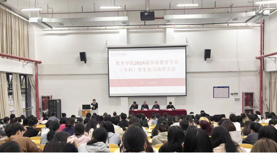 为推动2024届毕业生实习工作顺利开展,引导学生把握就业形势、做好职业规划,5月11日,教育学院2024届学前教育专业(专科)学生实习动员大会在志远楼101报告厅召开。教育学院院长郑昌保,教务科科长邹振根、副科长袁野出席,学工科科长张伟健主持。2021级专科班辅导员、实习指导老师代表及学前教育专业全体同学参加。