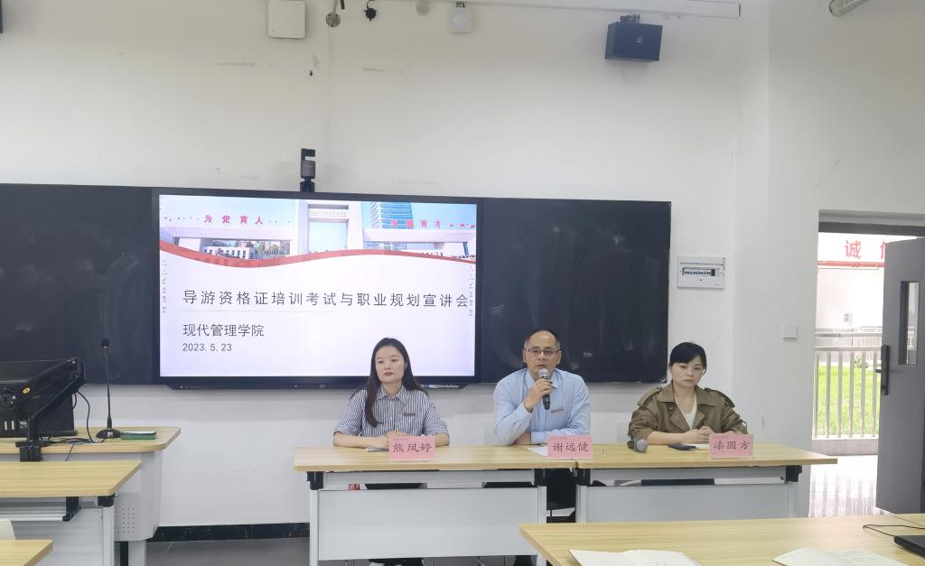 2023年5月23日下午2点,学院在劲松楼104教室开展导游资格证考试培训与职业规划宣讲会。学院2021级和2022级旅游管理与服务教育专业学生、2022级酒店管理专业学生参加会议。学院院长谢远健、副院长漆圆方、教务科科长周蓉、学工科科长苏秋月、旅游管理教研室和酒店管理教研室老师及相关班级辅导员出席会议。