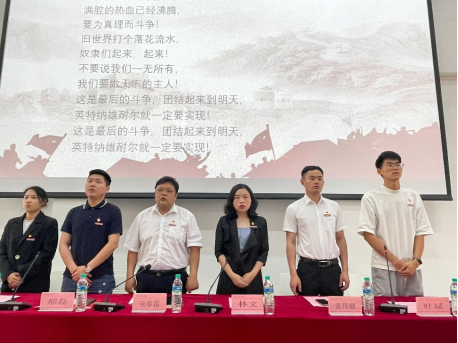 仪式第九项全体起立,奏唱国际歌,仪式结束