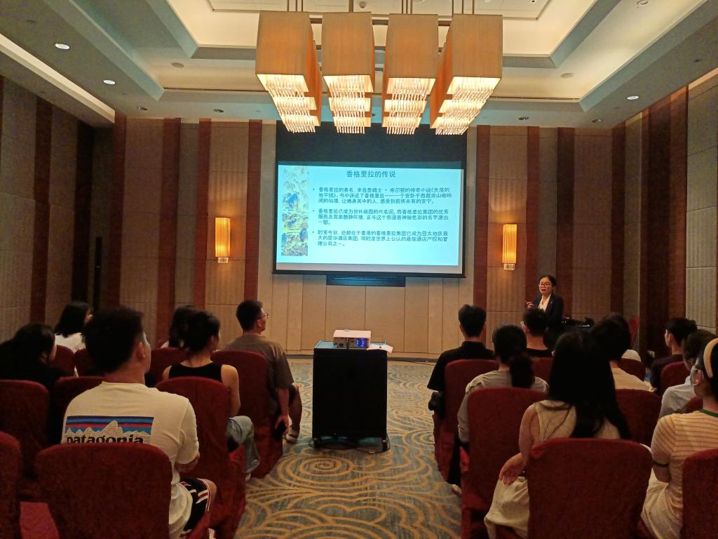 酒店人力资源部总监杨晶晶对同学们的到来表示了最热烈的欢迎,在杨总监的带领下参观了酒店大堂、行政酒廊、宴会厅和自助餐厅、客房、康乐中心。并对酒店的基本情况,运营模式,员工培训等一系列知识安排了专题讲座,大家通过学习提出的关于酒店工作所需的准备、酒店升职、薪酬福利、管培生等问题进行详尽的回答。
