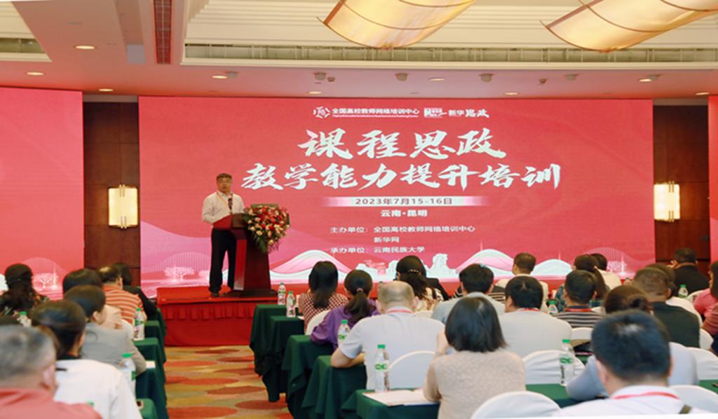 为深入贯彻落实习近平新时代中国特色社会主义思想和党的二十大精神,落实教育部课程思政建设工作推进会的具体部署,充分发挥课程思政教学研究示范中心的引领作用,破解课程思政“表面化”“硬融入”问题,全面提升高校教师课程思政教学能力,推进课程思政高质量建设。2023年7月15至16日,学院骨干教师、教师教育课程思政示范教学研究中心成员吴春燕、张梅玲两位老师参加了由全国高校教师网络培训中心、新华网新华思政与相关国家级课程思政教学研究示范中心主办,云南民族大学承办的“课程思政能力提升”培训。