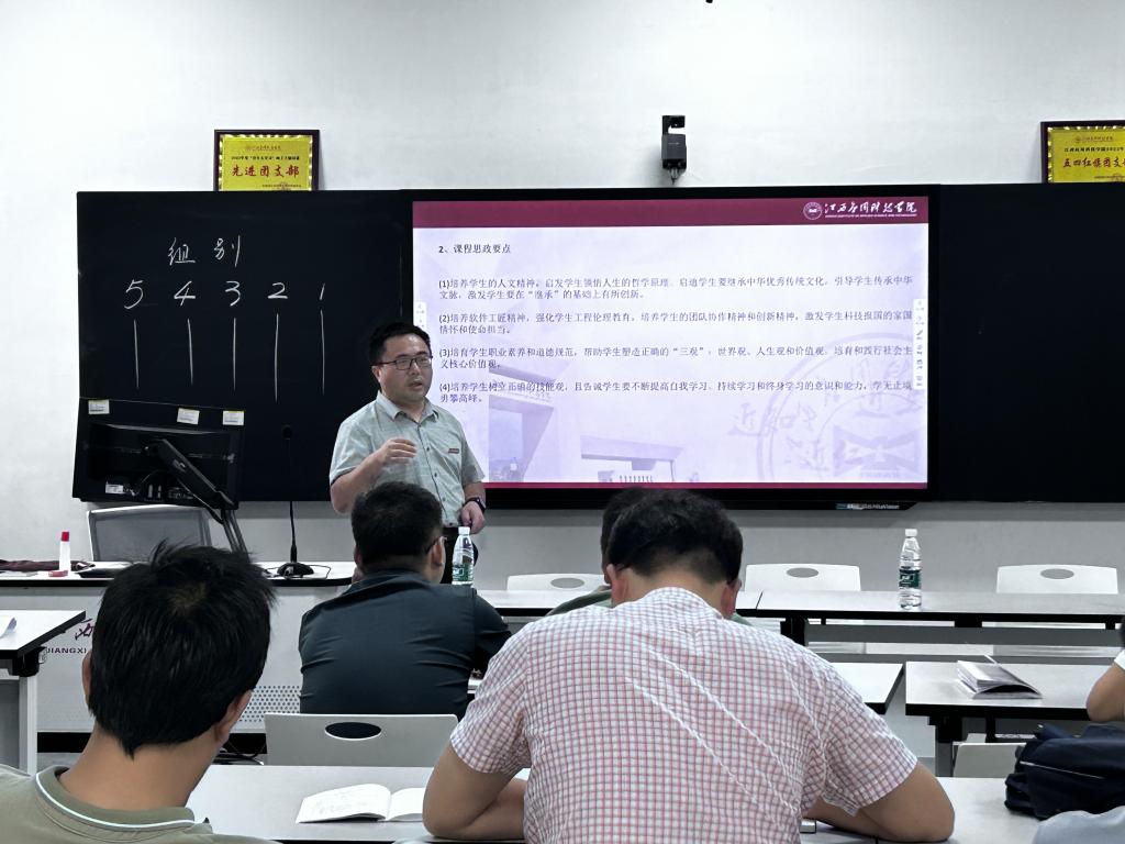 开班仪式结束后,学院开展由汪普庆老师主讲的第一期青年教师专题培训活动《课程思政立德树人—以<面向对象程序设计>为例》,活动由软件工程专业带头人彭军主持,学院全体专任教师、企业教师及兼职教师参加活动。