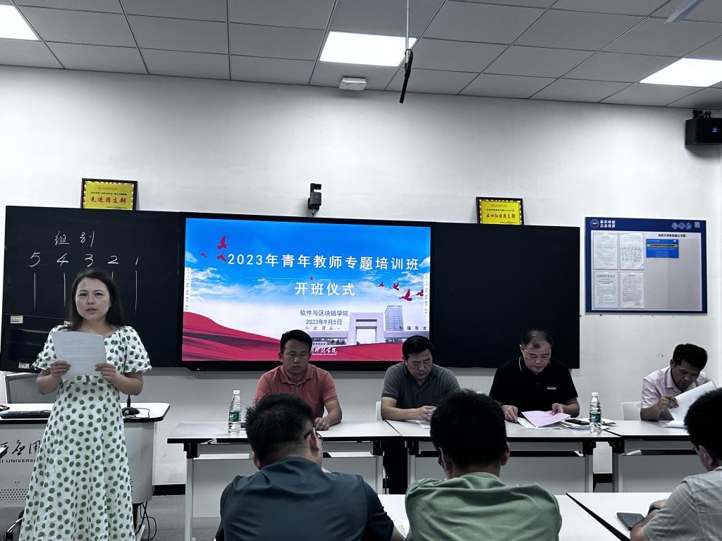 开班式上,学院党总支书记卢胜勇宣读了软件与区块链学院2023年青年教师专题培训通知,介绍参训教师分组情况,强调培训期间工作纪律及培训要求。