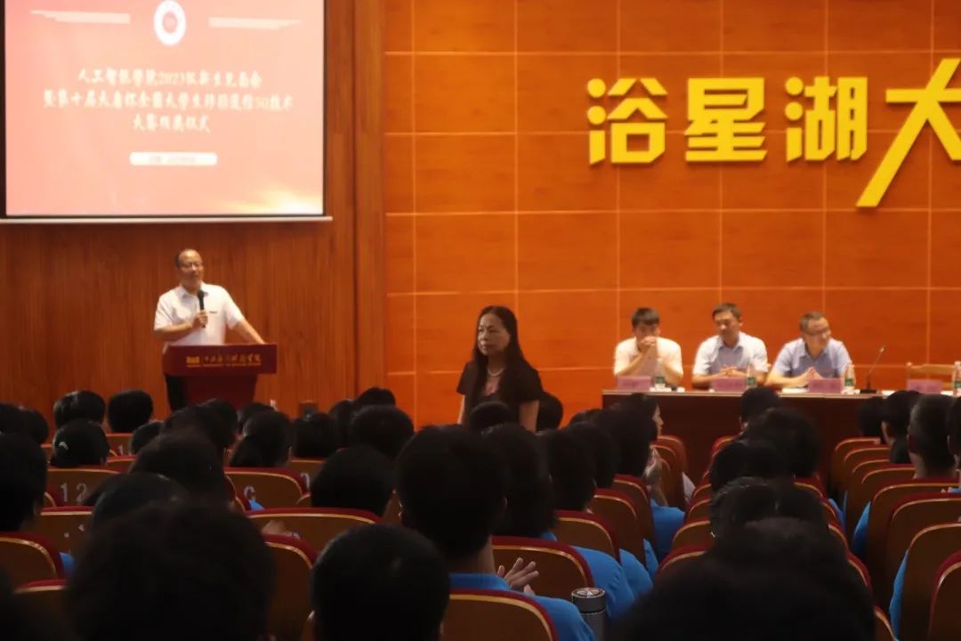 秋风送爽、丹桂飘香。2023年9月6日,人工智能学院2023级新生见面会在浴星湖大讲堂隆重举行。人工智能学院院长李俊,人工智能学院党总支副书记许永飞,人工智能学院常务副院长殷军,人工智能学院教务科科长张召志,人工智能学院办公室主任赵敏,人工智能学院教学实训管理科长马启科,人工智能学院教师代表以及2023级全体新生参加了本次大会。大会由人工智能学院学工科科长贾鹏军主持。