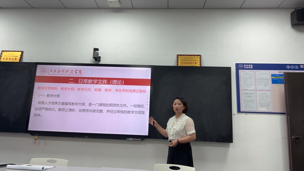 培训内容主要围绕“方向指引”、“日常教学文件(理论、实践)”、“考试与实习文件”及“其他规范”等四个方面展开,强调在教师教学档案材料中如日常教学五带的格式要求、教学日历及教学大纲的规范化制作等方面注意事项,并结合《新时代高校教师职业行为十项准则》重点内容及学校重点工作阐释教师使命,并以蔡元培《就任北京大学校长之演说》激励大家作为教师则必植其基,勤其学,否则误人误己。