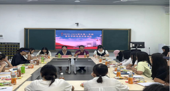 为扎实推进学院学风建设,进一步提高教学质量,加强教学信息反馈,更好地了解与掌握教师和学生教与学的实际情况,我院于2023年9月21日下午在行知楼219教室召开2023—2024学年第一学期音乐学院学生教学信息员座谈会,音乐学院院长许维东、党总支副书记唐燕琴、教务科科长胡雪芬、教务科副科长苏香丽、教务科全体成员及全院学生教学信息员参加会议。本次会议由胡雪芬老师主持。