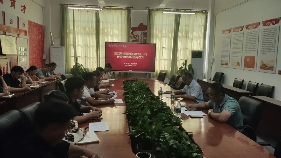 2023年9月19日上午,学校领导谢远健副校长、学工处处长黎晓明一行到我院调研指导工作,此次会议主要围绕学院辅导员队伍建设、大学生素质养成教育和第二课堂活动工程建设以及安全教育等重点工作的开展进行了深入的交流与探讨,对学院发展提出了具体建议和要求。学院院长卞秀运、党总支书记卢胜勇及全体辅导员参会。