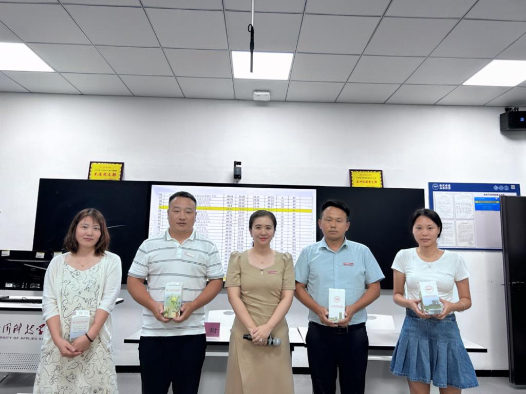 图3:干校长为学院教学评价排名前列的老师发放小礼品并合影留念