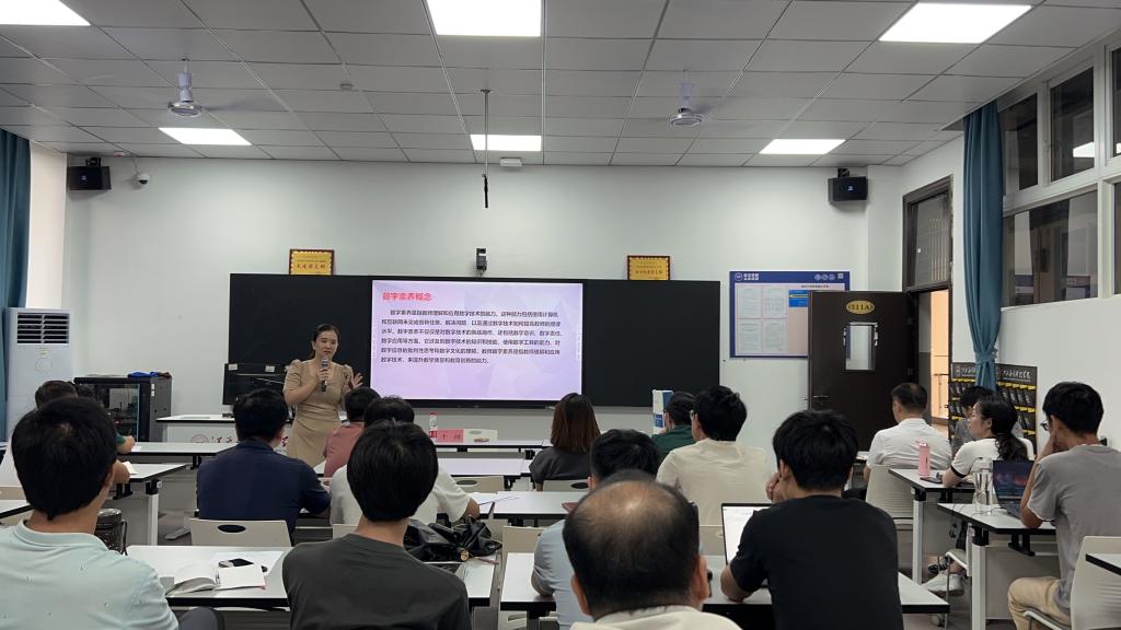 2023年9月20日下午,软件与区块链学院2023年青年教师专题培训班第八讲培训活动顺利开展,学校常务副校长干甜莅临我院授课《教师数字素养》,强调教师数字素养的重要性和必要性。活动由学院院长卞秀运主持,学院书记卢胜勇、副院长韩阳以及全体教师参加此次培训。