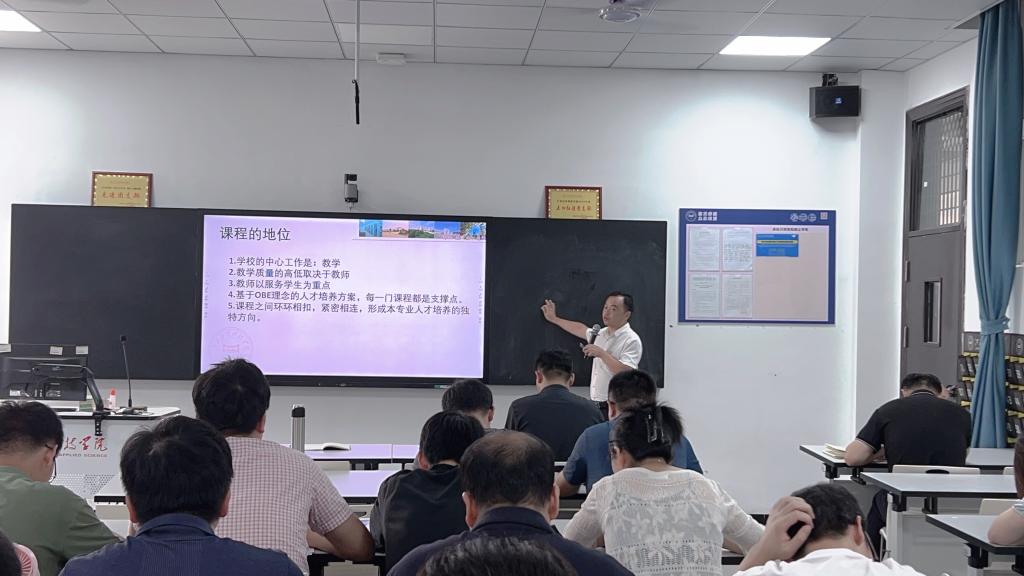彭军老师首先阐述了课程地位的重要性,强调学校的中心工作就是教学,教学质量的高低取决于教师,教师以服务学生为重点,基于OBE理念的人才培养方案,每一门课程都是支撑点,课程之间环环相扣,紧密相连,形成本专业人才培养的独特方向。