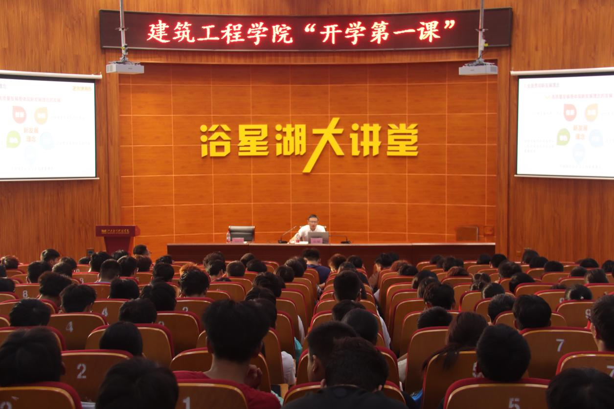 为全面贯彻党的二十大精神,深入开展学习贯彻习近平新时代中国特色社会主义思想主题教育,2023年9月26日16:30,校党委委员、副校长张敏以“开创高质量发展新局面”为题,在浴星湖大讲堂为建筑工程学院2023级新生讲授“开学第一课”,本次课程由建筑工程学院党总支书记刘伯川主持。