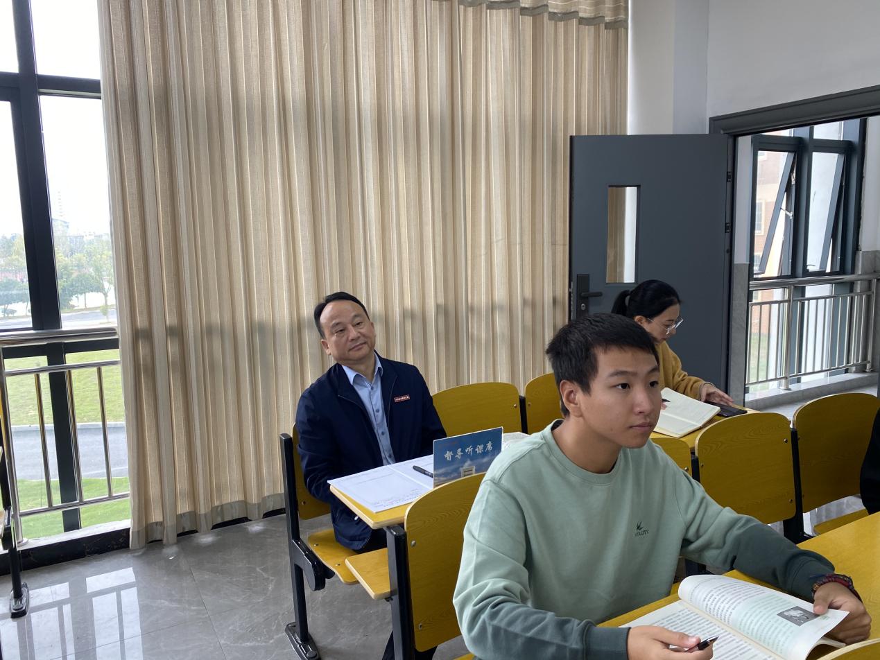 课后,彭书记对刘老师的授课作了点评,他对刘老师的教学方法和教学效果以及教学风格给予充分肯定,认为刘老师准备充分、熟悉内容,讲课生动、清楚自如,解析明白、案例生动,并就进一步提升教学效果提出了宝贵的建议。