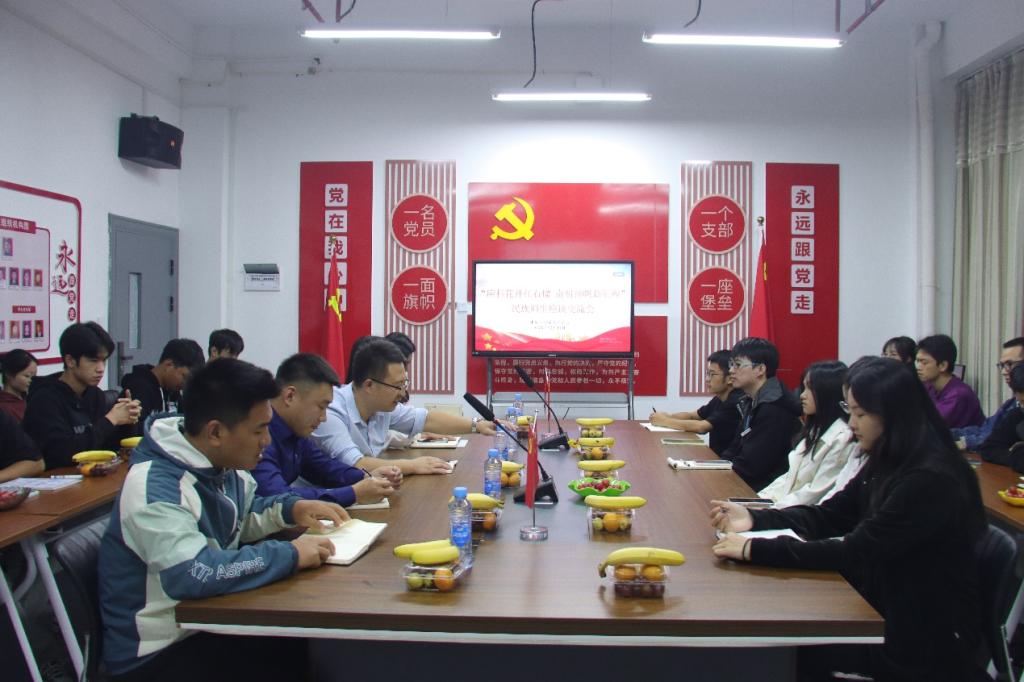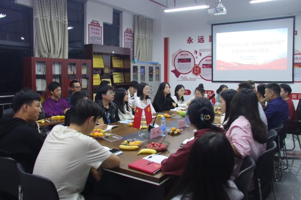 为深入学习宣传贯彻党的二十大精神,深刻领会习近平总书记关于民族团结进步的重要论述,铸牢中华民族共同体意识,进一步促进我院各民族师生交往交流交融,10月11日,建筑工程学院党总支在劲松楼402党员活动室召开“应科花开红石榴 奋楫扬帆新征程”民族师生座谈交流会。学院党总支书记刘伯川、党总支专职组织员兼统战委员况雨欣、学生党支部书记曾旺、学生党支部组织委员齐爽、学生党支部宣传委员李其岭以及各民族学生代表参加本次座谈会。