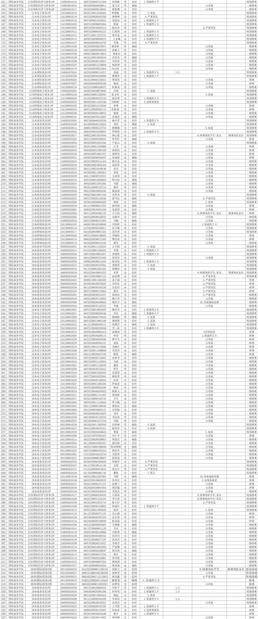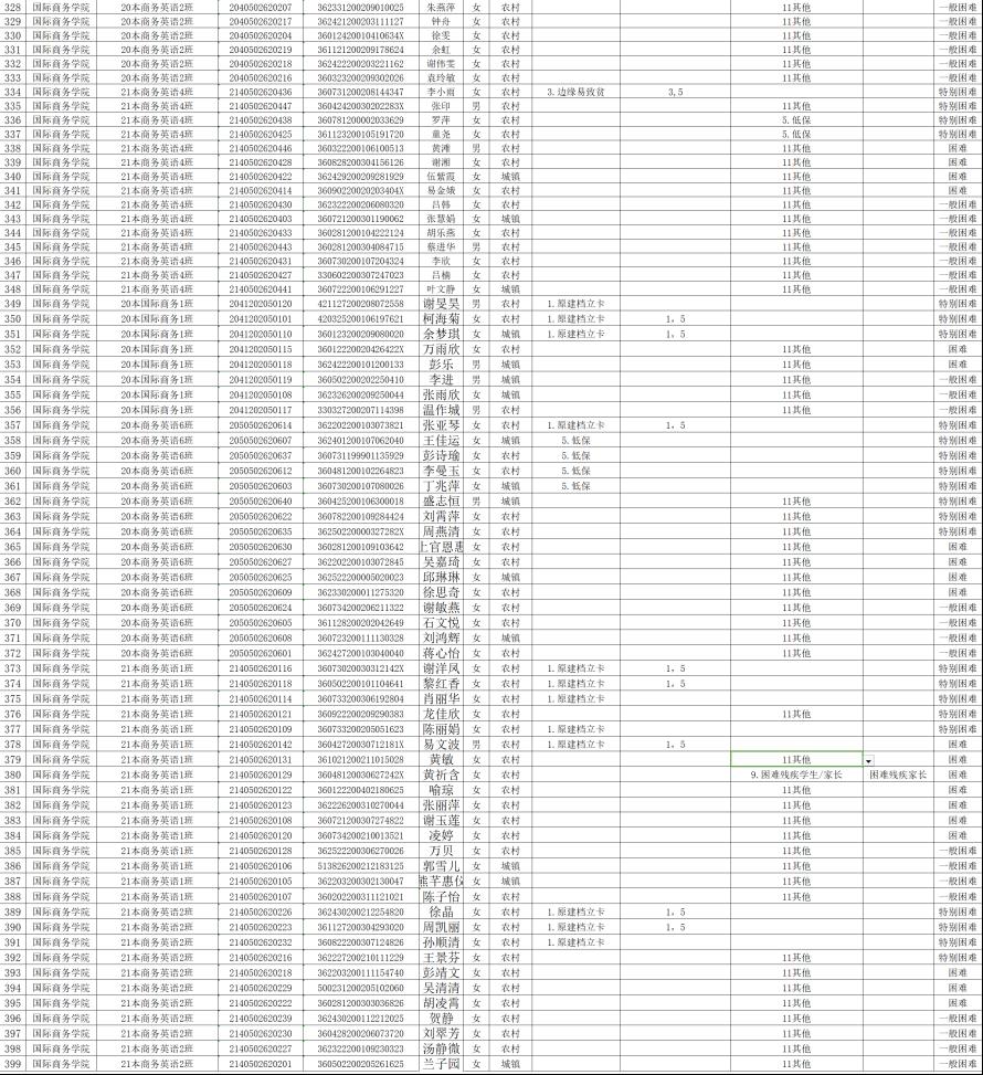 国际商务学院2023 —2024 学年家庭经济困难认定公示表(专科)
