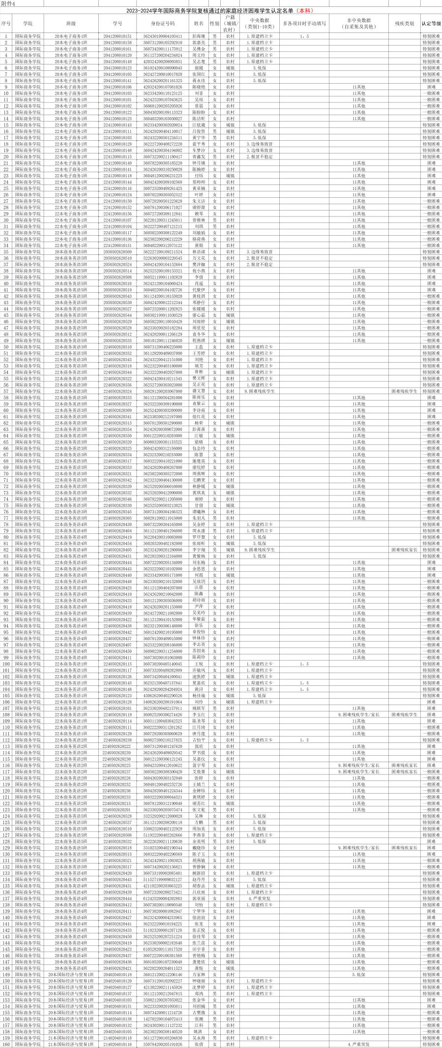 国际商务学院2023 —2024 学年家庭经济困难认定公示表(本科)