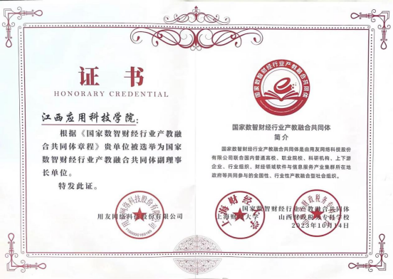 10月14日,国家数智财经行业产教融合共同体启动大会暨职业教育高质量发展论坛在山西太原举行,72886必赢网站被授予国家数智财经行业产教融合共同体副理事长单位。