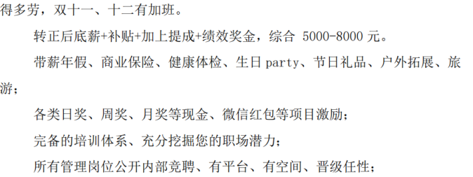 接着,他又提到,百秋以专业和效率为公司的核心价值,秉持着激情、勤奋、诚信、合作、共赢的价值观。同时,他也与同学们讲述了百秋的发展历程,告诉了同学们公司招聘的岗位人才、岗位要求、薪酬及福利待遇等信息,具体如下: