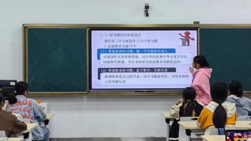 各班辅导员要求每位学生对上述系列好习惯的22个项目,每人选择3项及以上重点养成,对其余项目也要力保都能及格,不能在做人上出“废品”。强调全面保底、重点强化、尊重意愿、体现特色。通过全面保底养成健全的人格,通过重点养成形成鲜明的品格特征。