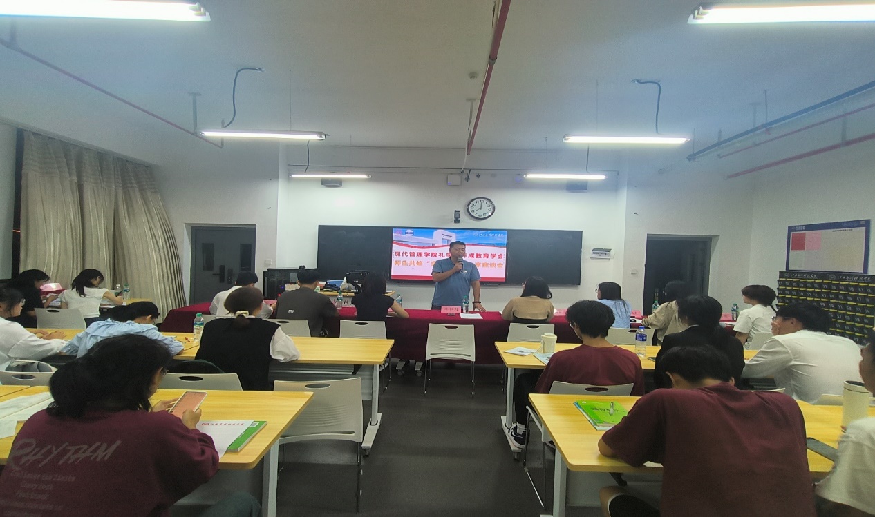 现代管理学院于2023年9月25日星期一在劲松楼204召开“大学生素质养成教育工程”师生共修座谈会,现代管理学院学工科科长苏秋月,全体辅导员及养成教育自治组织各班级负责人同学参加本次会议。此次会议由现代管理学院学礼学堂养成教育学会指导老师汤淇茗主持。其中,汪阿娇同学分享了参与活动期间遇到的趣人趣事,不仅认识了许多新朋友,还在丰富的社交生活之中锻炼了自己的表达能力。还有同学在课外阅读的书籍中受到启发,在座谈会上勇于表达自己对书籍的见解,与其他同学交流意见。辅导员徐婕分享了表达好习惯的开展状况以及给予学生们关于提高表达能力的建议。加强培养学生敢于表达和善于表达的能力,注重引导学生情感表达,丰富积累经验,发展个性,增强自己的精神力量。