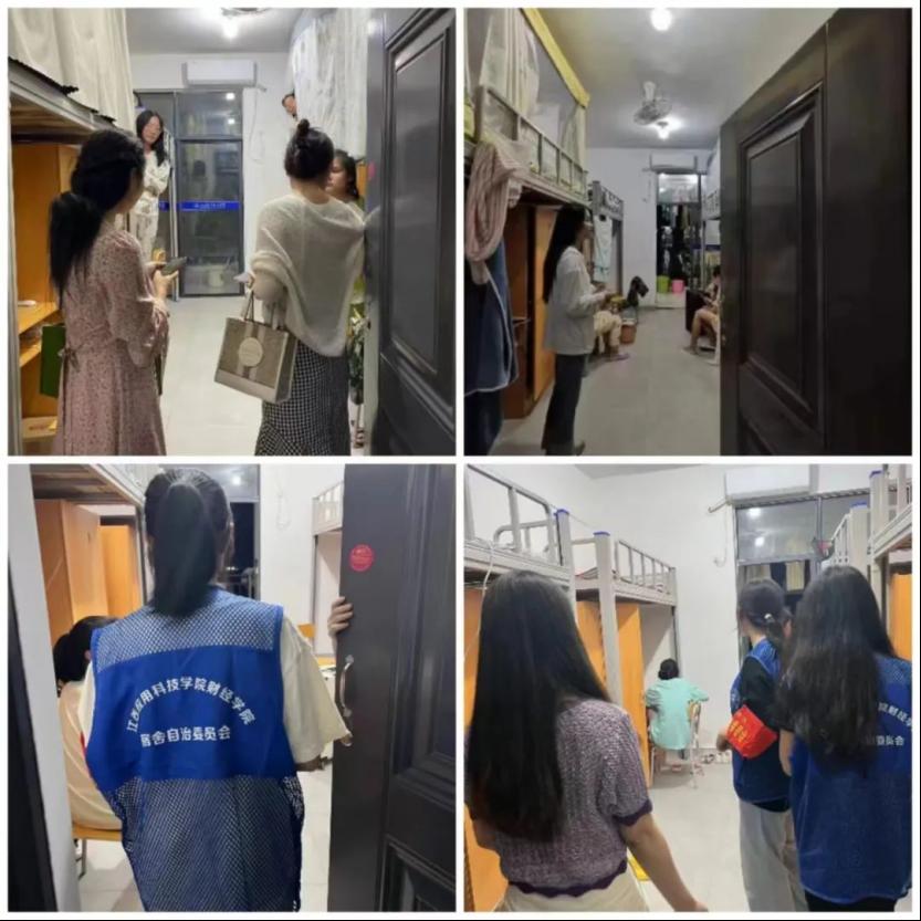 国庆佳节结束,学生陆续返校,为加强宿舍安全管理、排除宿舍安全隐患,督促学生养成良好的日常生活习惯。财经学院党总支书记何难绝,财经学院学工科科长赵贺贺,财经学院全体辅导员带领财经学院宿治会工作人员于2023年10月7日晚走进宿舍,强调宿舍各同学应树立安全意识,做好宿舍个人用品的整理,注意消防安全。