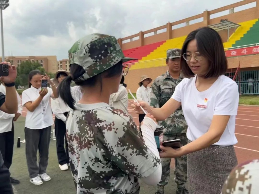 在星洲运动场上,财经学院的新生们在教官的带领下整顿休息。他们虽满头大汗仍精神抖擞,活力满满,洋溢着青年人的朝气与活力。财经学院院长揭志锋、财经学院党总支书记何难绝、财经学院学工科科长赵贺贺与同学们进行了亲切交流。揭志锋院长特别强调了作为开学第一课的军训的重要性,只有我们青年人足够刻苦,才能提升自己的价值,从而让我们的祖国拥有更加光明的未来。