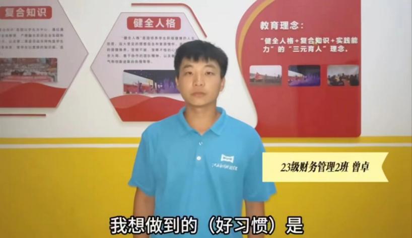 为了让新生更了解学校的养成教育,我们特意采访到23级新生23本会计学2班彭互惠 、23本会计学3班戴婉怡、23本财务管理2班曾卓、23级会计学4班张轩四位同学。他们向大家分享了对养成教育的看法以及军训以来自己生活学习上暴露出的问题,并对自己新学期将养成什么样的好习惯做出了规划。