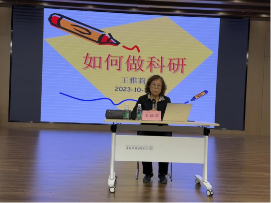 王雅莉从青年教师科研基础入手,对思想方法、研究方法和论文方法论分别进行了阐述,随后向教师们讲述了学术论文发表应做的准备工作,指出教师们应当在已有认知的基础上,不断地增加研究内容,拓宽研究范围,形成一个全方面的系统认知。