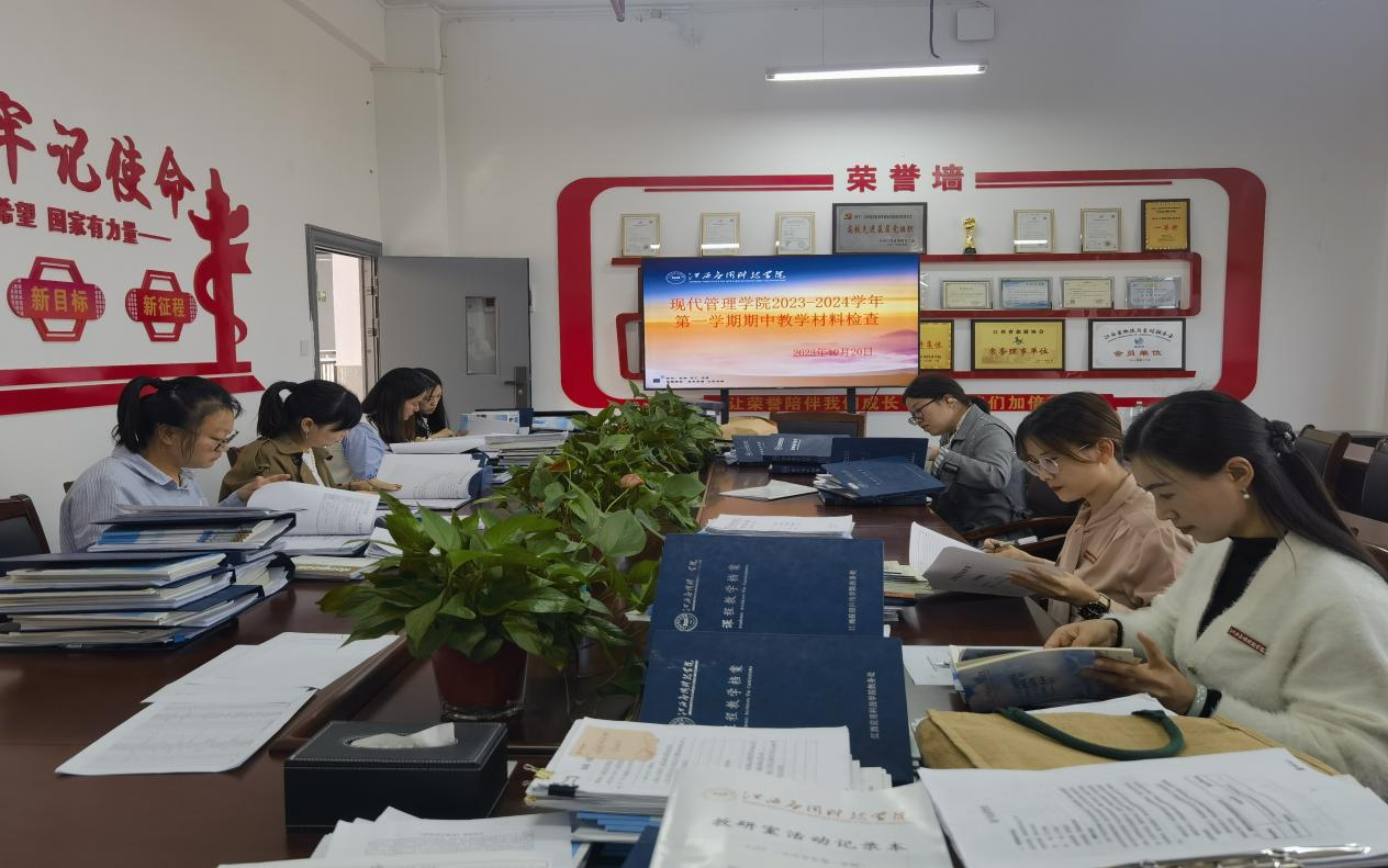 学院成立了以院长樊立君为组长、副院长漆圆方为副组长、教研室主任、校院督导以及教务科组成的期中教学检查组,10月20日下午开展了教学材料检查,对学院任课老师课程大纲、教学日历、教案、纯实践课程全套材料、平时成绩记录册、作业批改情况、辅导答疑情况、实训报告及教研室活动记录本等材料进行了检查。