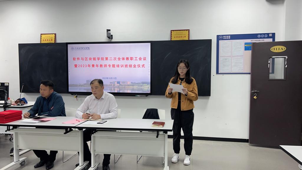 为快速提升学院青年教师教学技能,促进教师专业能力提升,探讨教育教学新方法,学院利用工作日下午教师无课阶段开展了为期半个月多月的“2023年青年教师专题培训班”教学培训活动,并于10月13日下午召开全体教职工会议暨青年教师专题培训班结业仪式,结业仪式由学院院长卞秀运主持,学院全体教职工参加。