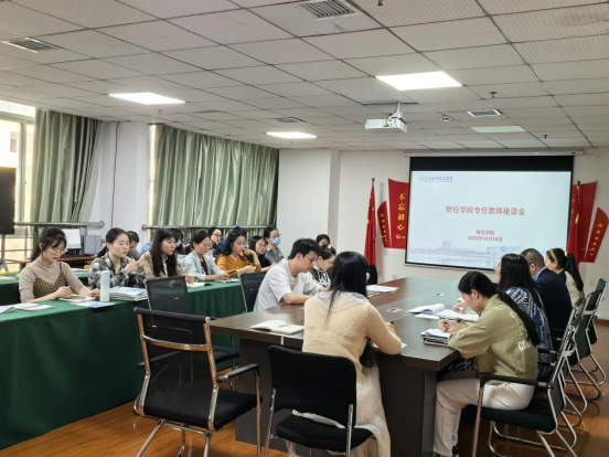 为落实各阶段教与学的过程保障,严抓教学秩序和教学过程质量监控,财经学院于10月18日下午在综合楼211召开了专任教师座谈会。院长揭志锋、各教研室主任及全体专任教师参与会议。会议由教务科科长李静主持。