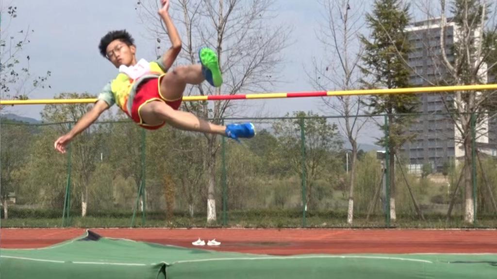 在步伐优美的助跑后,一跃,身体在空中划出一道弧线,迅速沉身,收脚。过。真是优美的跳高姿势。每一次,都是挑战,是超越。为了每一次超越喝彩。