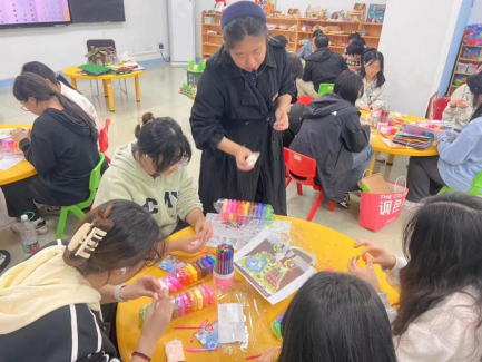 课堂上,闫婷老师引导学生们动手制作,亲自示范并耐心解答他们的问题。她指导学生们如何使用不同的材料和工具,如何发挥他们的想象力和创造力,如何将自己的想法转化为具体的手工制作作品。在课堂上,学生们积极参与,充满了学习的乐趣,他们亲手制作的作品充满了创意和个性。
